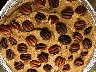 Bake 10 minutes at 400, 20 minutes at 375, 25 minutes at 350, and leave in the turned-off hot oven for another 15 minutes. (Egg-free baking takes longer. Smaller pans might have been good)
